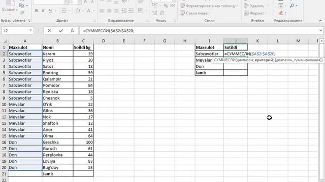 Excelda Суммесли() funksiyasi I Экзелда Суммесли() функцияси