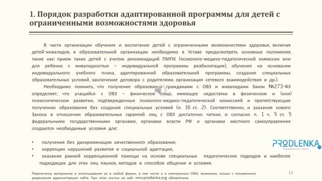 Вебинар «Разработка адаптированных основных образовательных программ обучающих с ОВЗ в школе»
