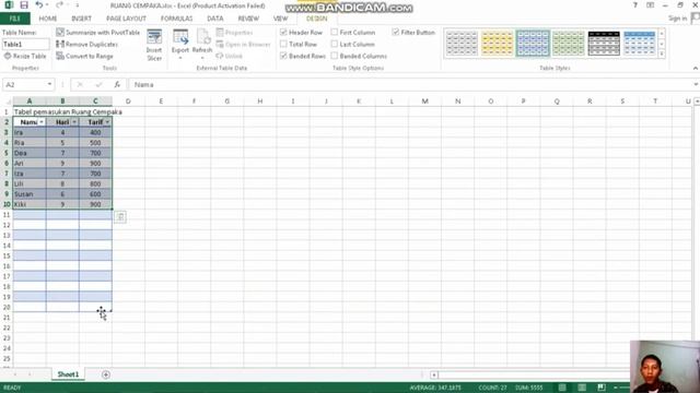 Tutorial pembuatan tabel dan grafik pada mucrosoft excel