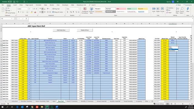 10 - ARGUS Excel Model - Rent Roll Section - Rollover - Part One