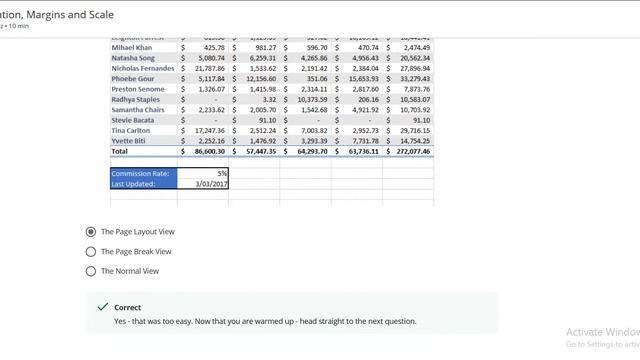 Week-5 Quiz | Orientation, Margins and Scale | Excel Skills for Business: Essentials | Coursera