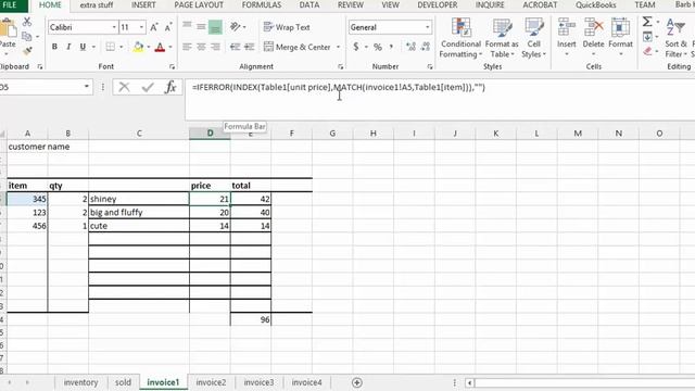 Use a table for your Inventory in Excel