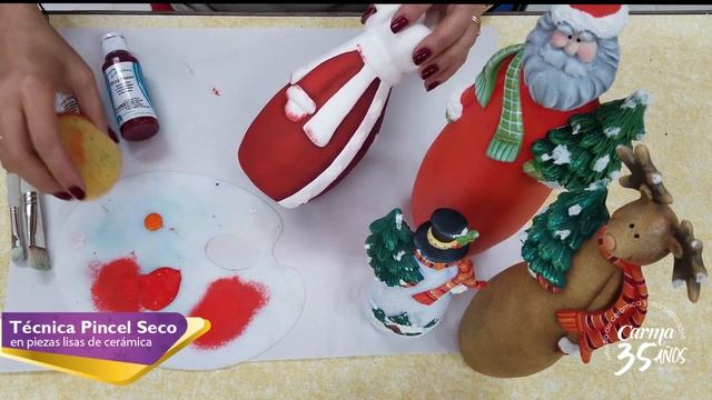 CERÁMICA CON ACRÍLICOS - PINCEL SECO EN PIEZAS LISAS - Reno navideño