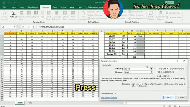 How to Tally grades automatically using MS EXCEL.