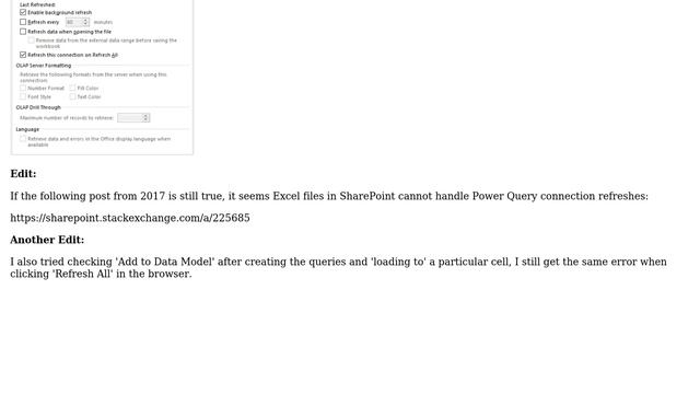 Getting data from SharePoint Online in Excel 2013 spreadsheet - unable to refresh one