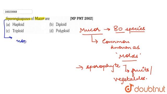 Sporangiospores of Mucor are