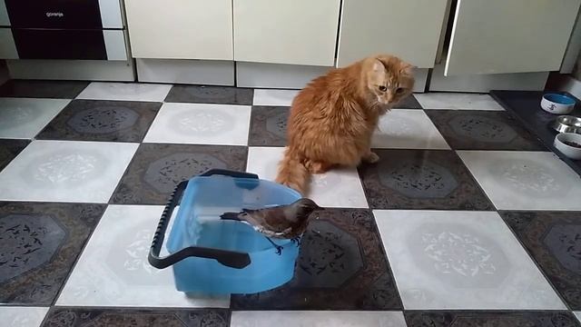 Дрозд Чипа и кот Рыжик