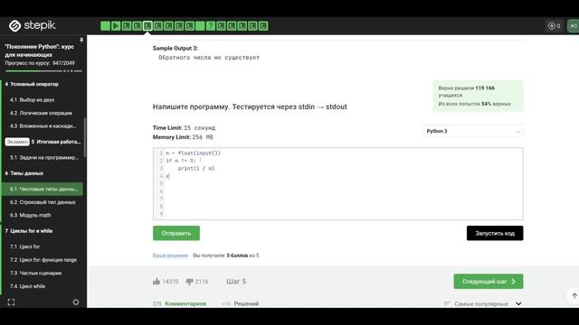 6.1 Обратное число. Числовые типы данных: int, float. "Поколение Python": курс для начинающих.