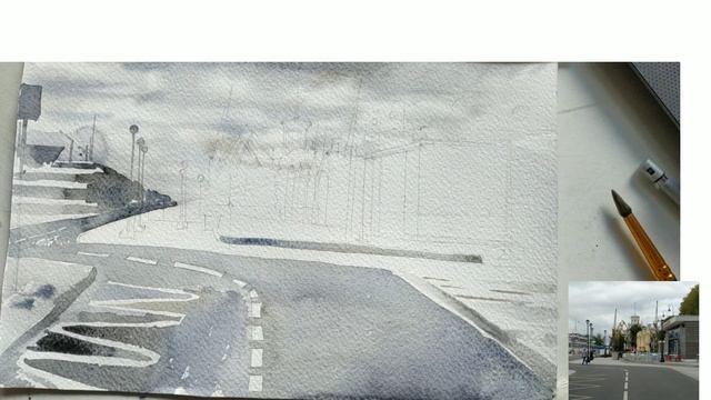 Рисуем городской пейзаж. Речной вокзал.