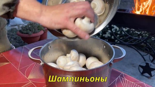 Шашлык из рыбы.Грибы на костре.Замок Шато-Эркен.