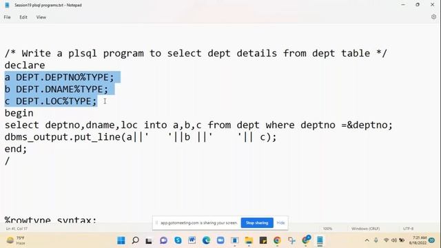 18 August 2022 oracle PLSQL dynamic datatype %rowtype