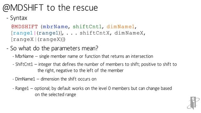 Essbase @MDShift Function