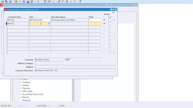 Inventory Customer Item Cross Reference