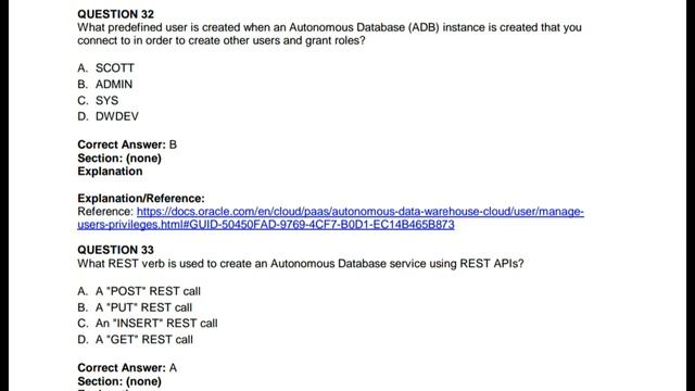 Oracle Autonomous Database Cloud Certified Specialist | 1Z0-931-20 | Set 1: 21-40