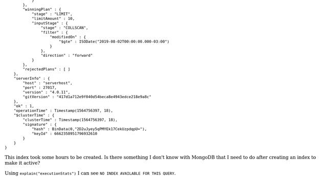 Databases: MongoDB is not using the index I created for this specific query