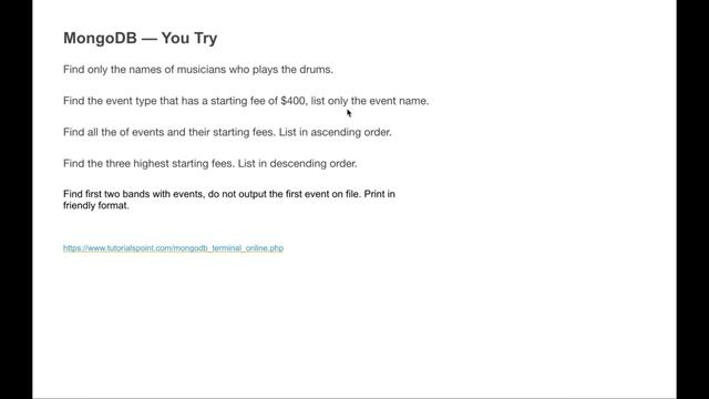 MongoDB - The Beginners Bootcamp - PROJECTION Query Exercise