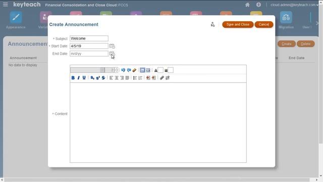 14 Tutorial to explain how to create announcements within Oracle FCCS