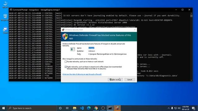 How to fix don't have journaling enabled by default. unable to start MongoDB server on windows 10