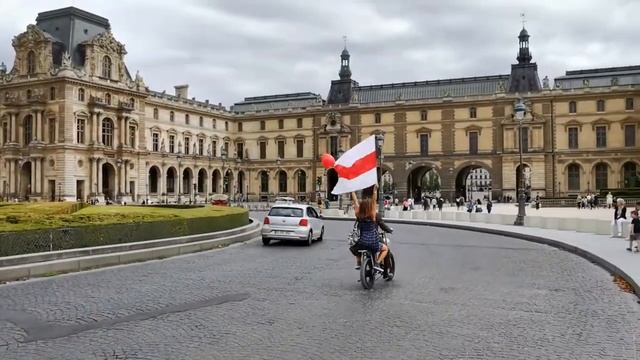 Видеофакт. Бело-красно-белый флаг около Лувра на Акции Солидарности 05.07.2020