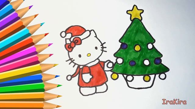 Хелло Китти! Новый год! Рождество! Рисуем раскраски с блестками! Учим цвета на русском языке!