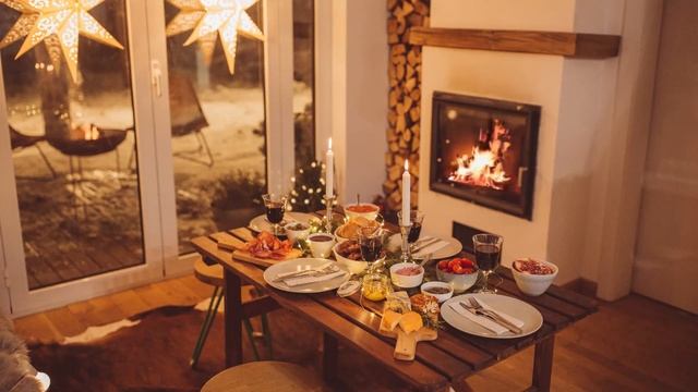 Cozy christmas time-fireplace ambience with jazz music-cozy ambience sounds-fireplace sounds music