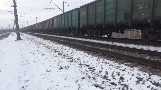Электровоз 2ЭС6-042 Синара с грузовым поездом следует по перегону Арамиль-Седельниково