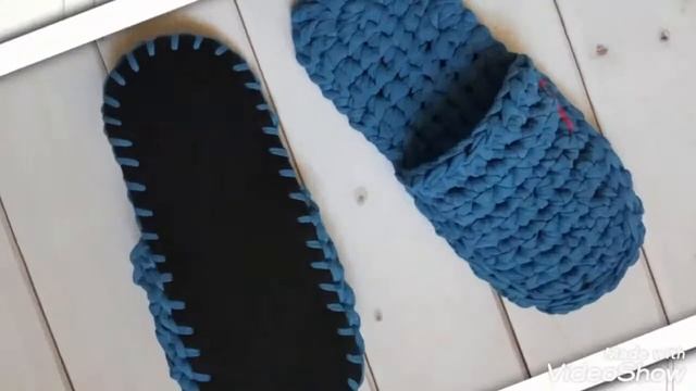 Домашние тапочки с трикотажной пряжи handmade