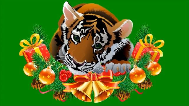 Футаж Тигренок Новогодний на хромакее рисованное видео