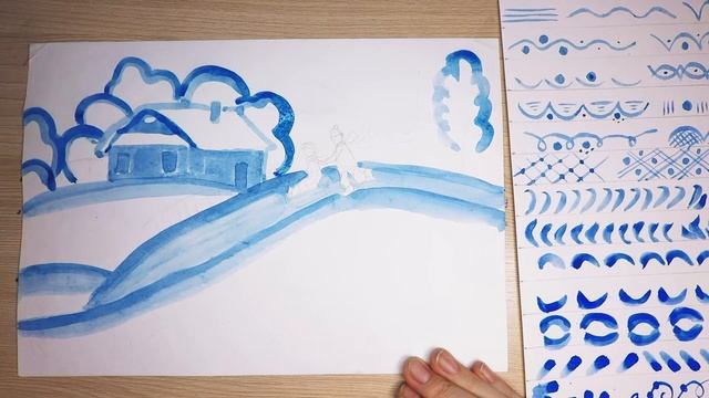 Зимний пейзаж гжельскими мотивами