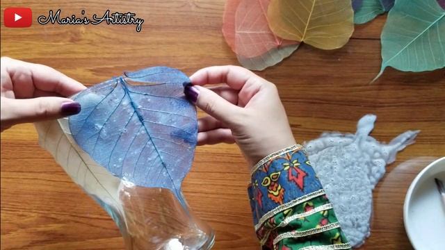 Skeleton Leaf Craft Series / How to decoupage with skeleton leaves on glass / DIY Art and craft