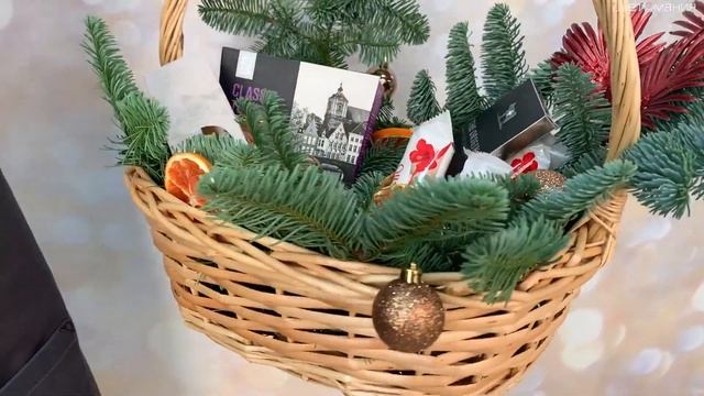 Обзор на праздничную корзину с шоколадом, сухофруктами, конфетами и ягодами "Новогодний презент"