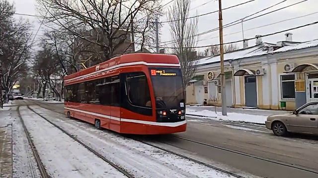 Трамвай мод. 71-628 № 08 маршрут 2 г. Таганрог, Улица Александровская (Октябрьская площадь)