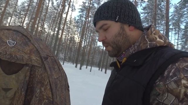 Баня-палатка. В снежном лесу.
