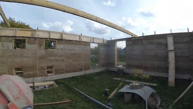 опилкобетон, стены завершение, начало работ с потолком