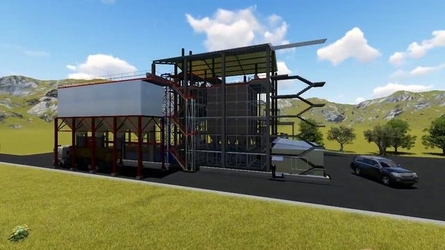 Видео 3D модели завода по производству кормов и добавок для домашних животных, скота и птицы