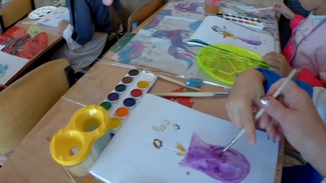 Урок в 1 классе. Осенний букет акварелью.