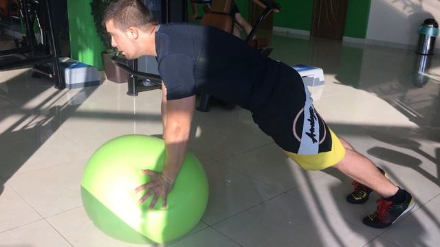 Планка руки на фитболе.
