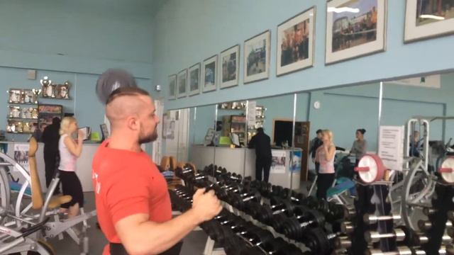 Жим гантели 25кг стоя одной рукой