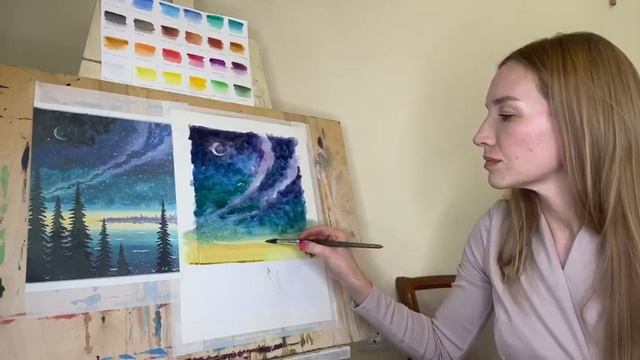 Мастер класс акварелью "Звездная ночь"
