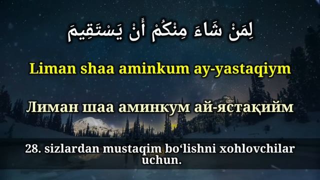 TAKVIR SURASI (YOD OLISHINGIZ UCHUN) TARJIMASI BILAN | DONIYOR QORI | ТАКВИР СУРАСИ ТАРЖИМАСИ БИЛАН