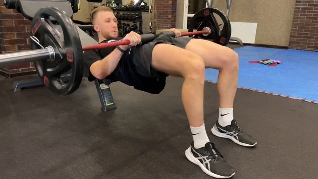 Ягодичный мостик со штангой упор на скамью «пульс» (частичная амплитуда)