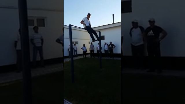 Выход силой 10 раз на две отжимания в груди по 10 раз пресс нижний