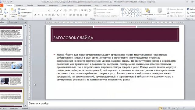 Тема 8 Роль малого и среднего бизнеса в развитии национальной экономики