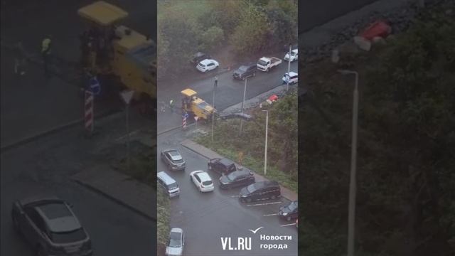 На Патрокле во время ремонта дороги асфальтовой крошкой засыпали деревья и траву