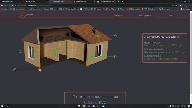 Прототип. Калькулятор стоимости строительства дома