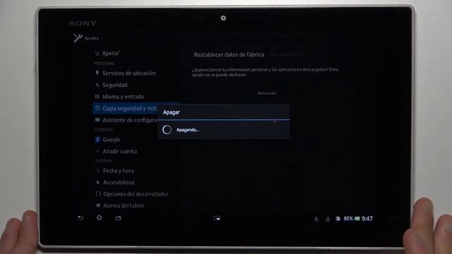 Restablecer de fábrica el SONY XPERIA TABLET Z