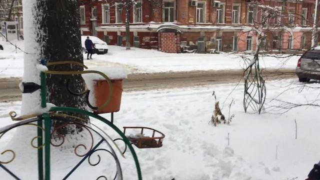 Зонт для снега и древний велосипед в зимней Одессе на молдованке