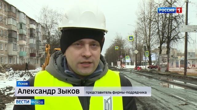 Дорожники демонтируют старый асфальт и разбирают ограждения на ул. Яна Фабрициуса в Пскове