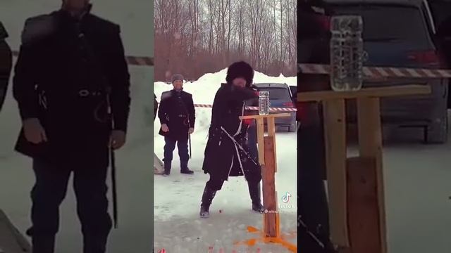 Казак машет шашкой)