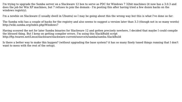 DevOps & SysAdmins: Samba 3.3 or later on Slackware 12 - how do I make this happen?